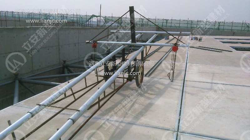 鋼骨架輕型板適用于輸煤棧橋、公共民用等建筑圍護(hù)屋面、樓面、墻面.鋼骨架輕型板由輕型鋼骨架、冷拔鋼絲網(wǎng)、改性水泥珍珠巖復(fù)合芯材(專有技術(shù))、復(fù)合抗?jié)B耐磨涂層(專有技術(shù))組成.鋼骨架輕型板集輕質(zhì)、承重、節(jié)能、防火、隔聲、泄爆、抗震等功能于一體,既保持了傳統(tǒng)鋼筋混凝土構(gòu)件安全度高、使用壽命長的優(yōu)點(diǎn),又滿足了現(xiàn)代建筑對(duì)輕質(zhì)、節(jié)能、環(huán)保的要求。